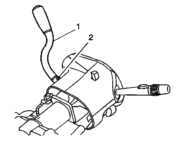 3. Roll back the seal on the shift lever (1) until the TORX(R) head shift lever screw (2) is exposed.