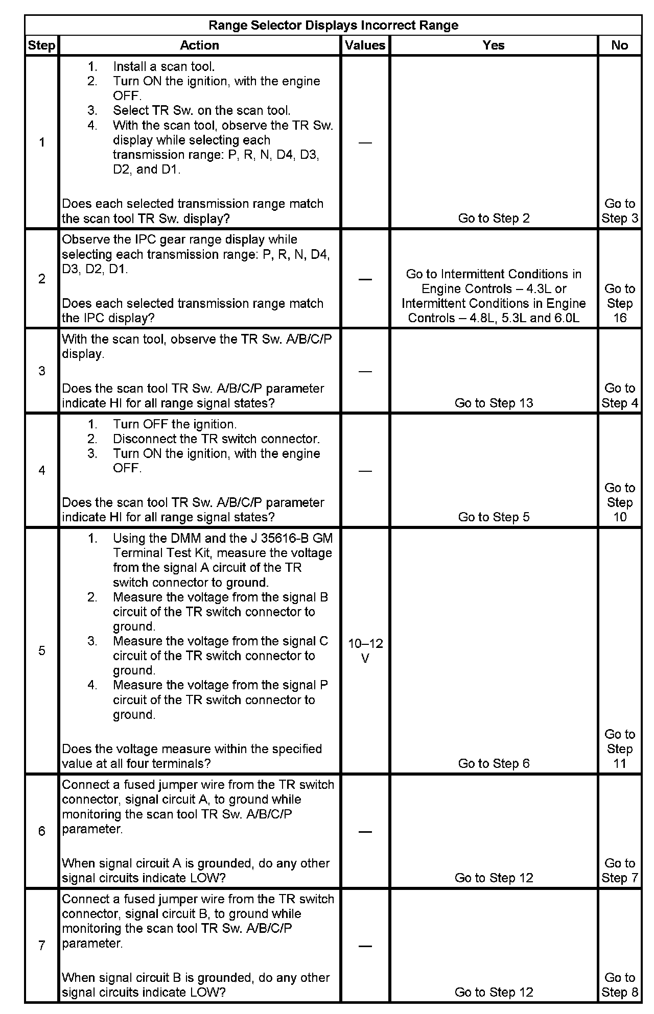 5. This step tests the TR switch wiring for an open or the lack of the signal voltage from the PCM.
