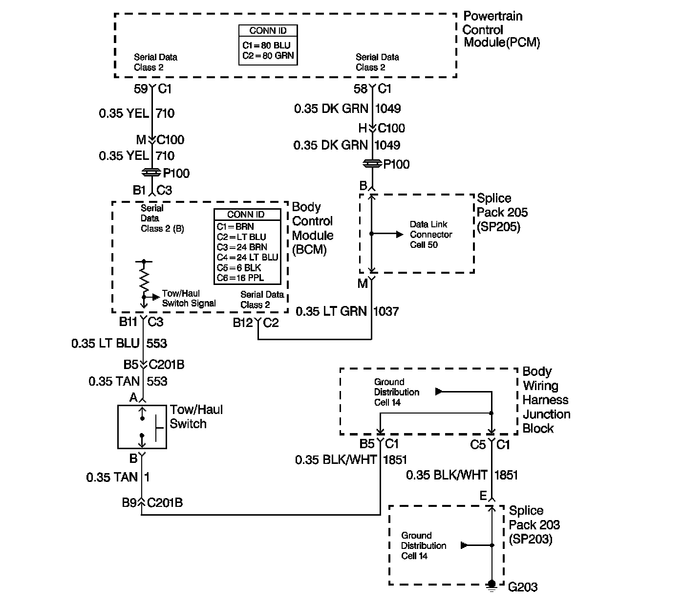 Tow/haul mode enables the operator to achieve enhanced shift performance when towing or hauling a load. When tow/haul mode is selected, the tow/haul switch input signal to the body control module (BCM) is momentarily toggled to zero volts. This signals the powertrain control module (PCM) to extend the length of time between up shifts and increase transmission line pressure. Cycling the tow/haul switch again disables tow/haul mode and returns the transmission to a normal shift pattern.