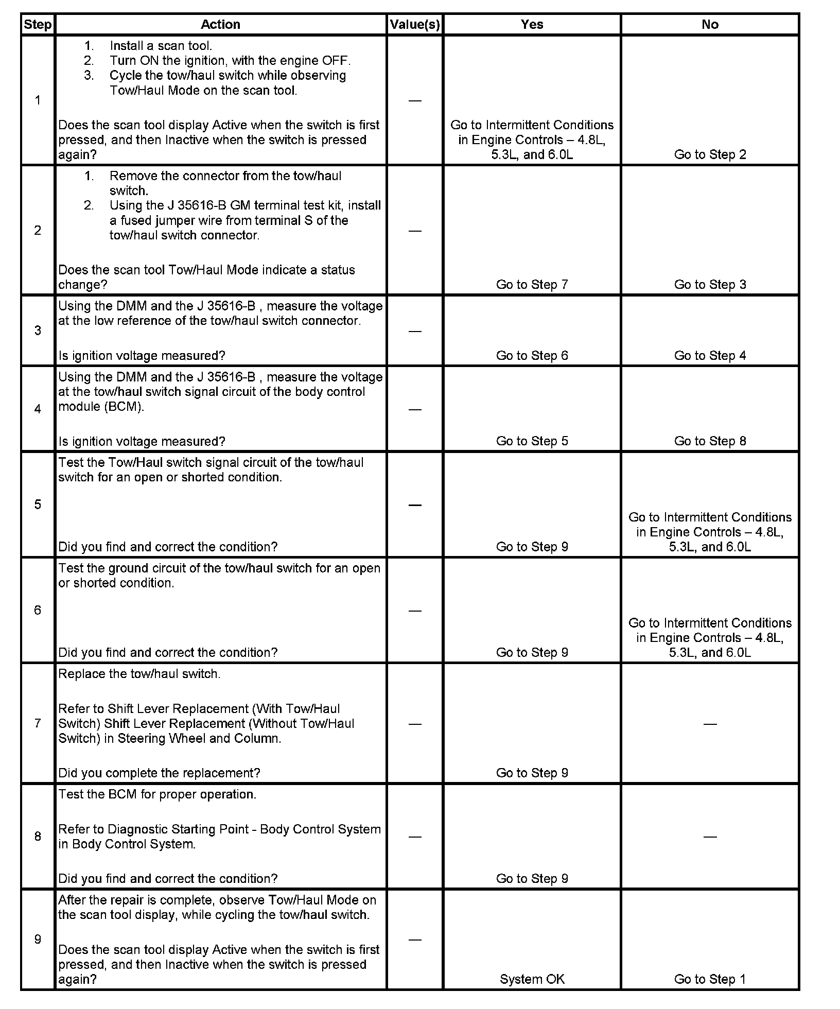 2. This step tests for a faulty tow/haul switch.
