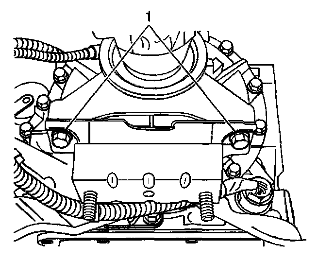 5. Remove the transmission mount to the transmission or transfer case adapter mounting bolts (1).