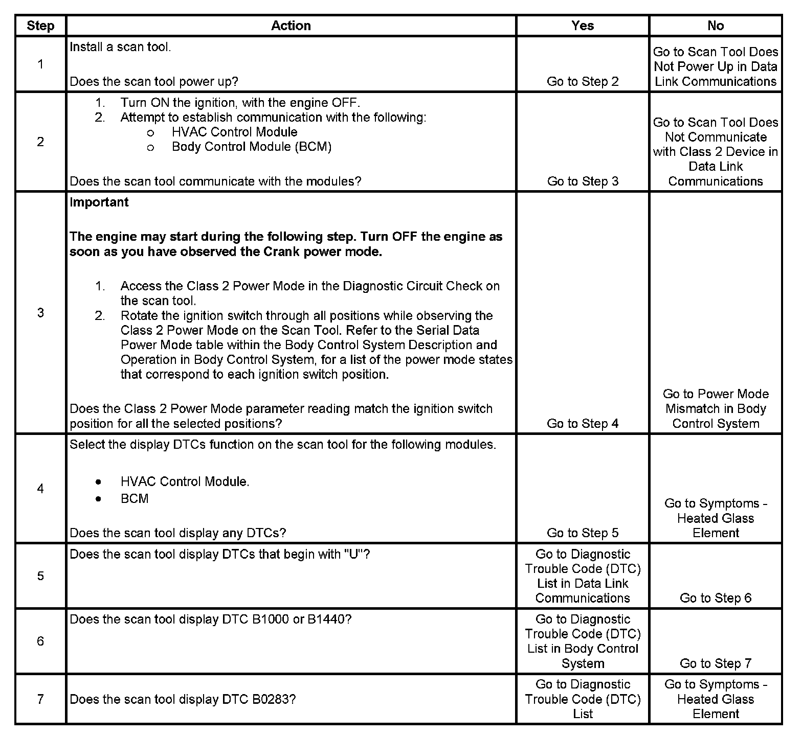 2. Lack of communication may be due to a partial malfunction of the class 2 serial data circuit. The specified procedure will determine the particular condition.