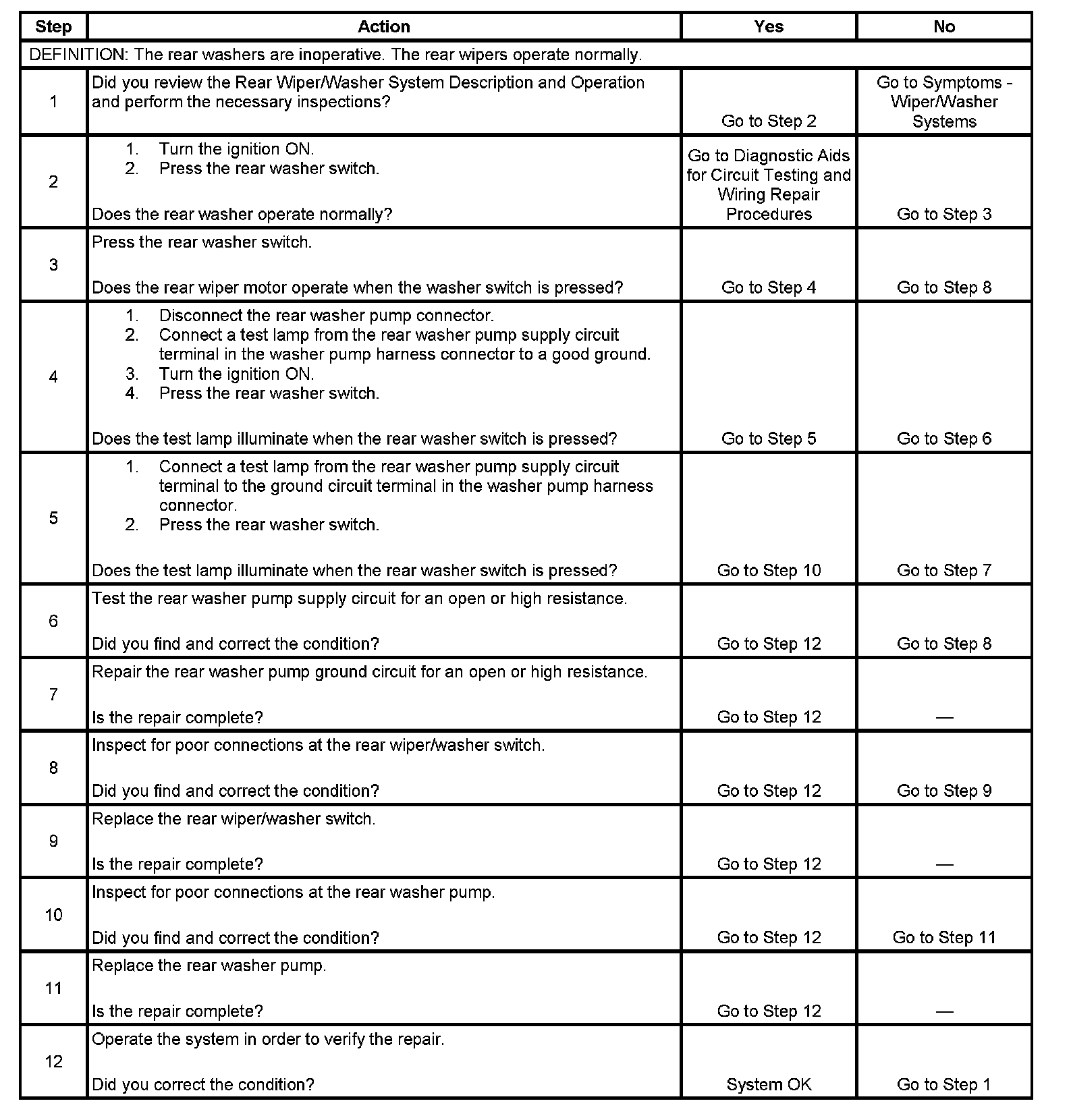 Washer Inoperative - Rear