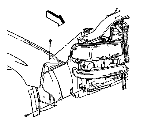 15. Remove the fender to radiator support bolts.