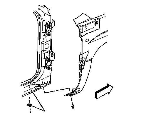 13. Remove the fender to door hinge bolts.