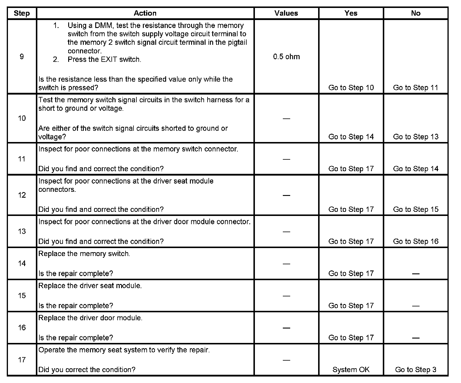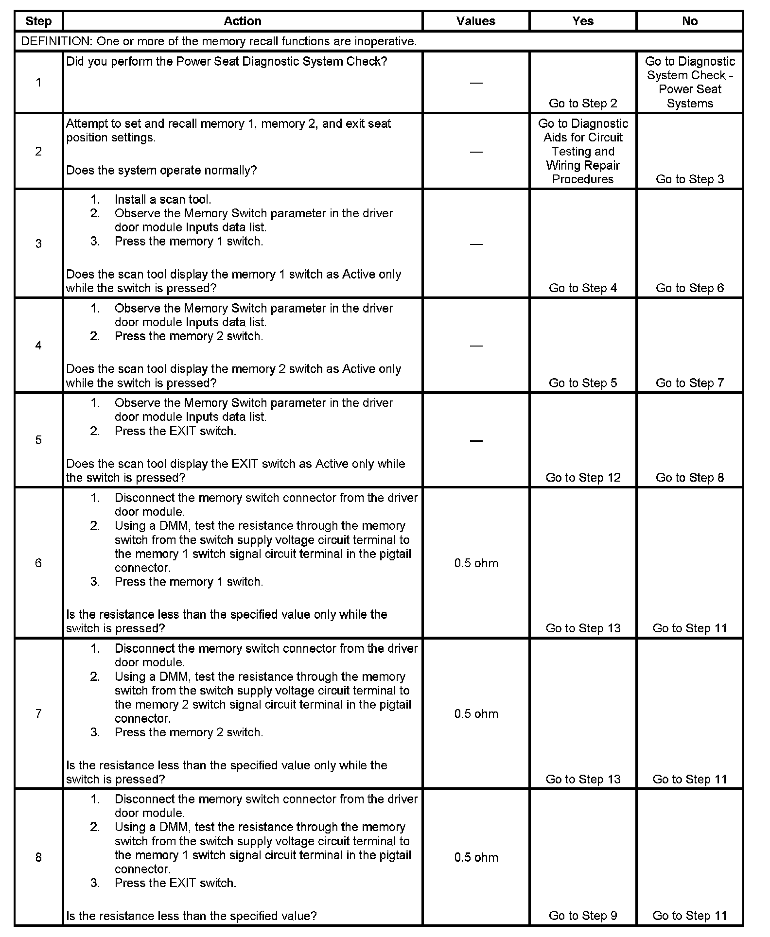 Memory Seat Feature Inoperative