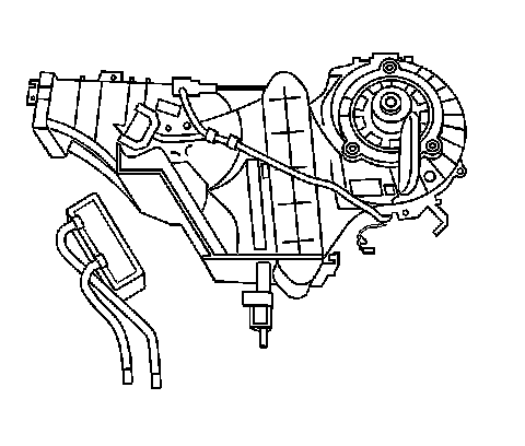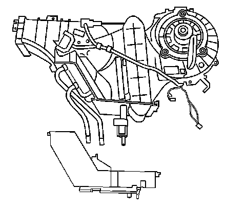 5. Install the stud between the heater core inlet and outlet on the underside of the rear HVAC module.