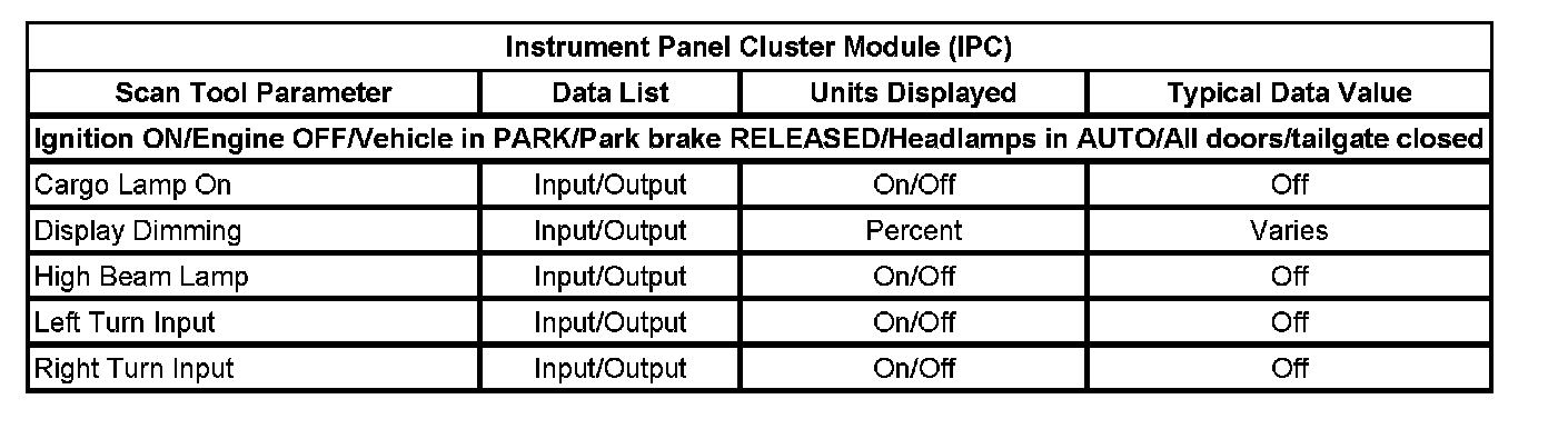 Scan Tool Data List - Instrument Panel Cluster (IPC) Module