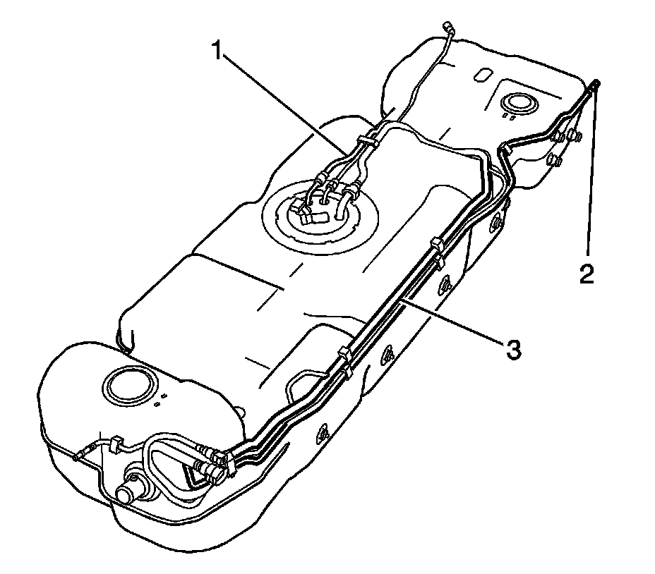 2. Disconnect and remove the fuel feed line (1) from the sending unit and retaining clips.