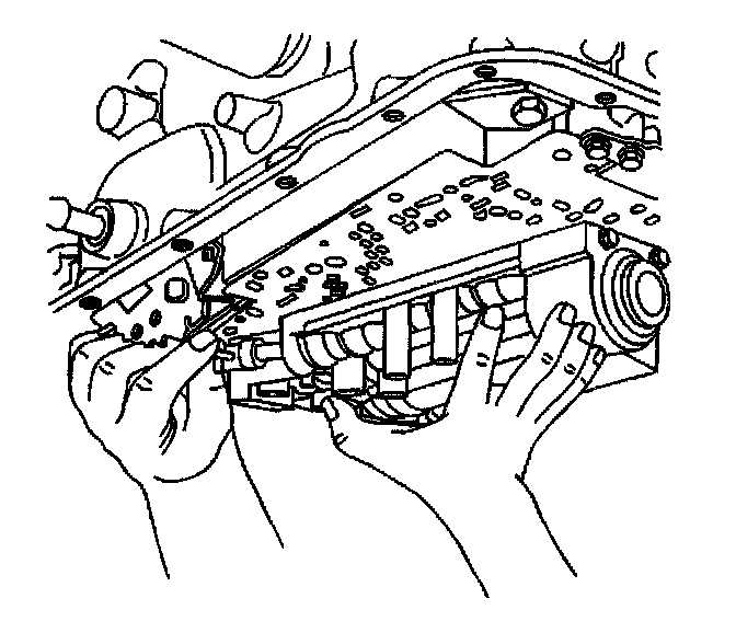 Important: Keep the valve body level when lowering it from the vehicle. This will prevent the loss of checkballs located in the valve body passages.