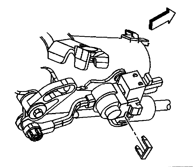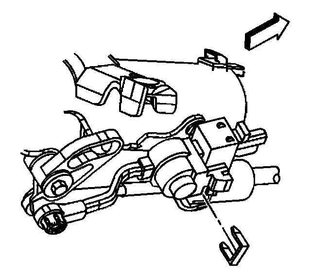 7. Depress the tangs and remove the cable from the steering column bracket.