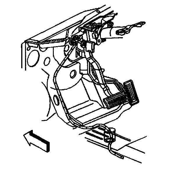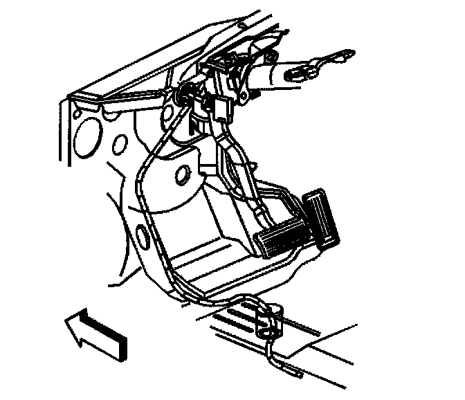 2. Remove the instrument panel knee bolster. Refer to Knee Bolster Replacement in Instrument Panel,Gauges and Warning Indicators.