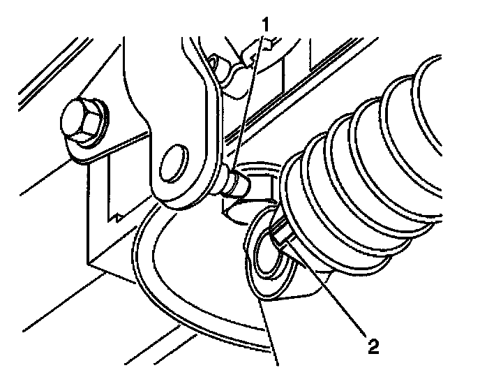 16. Remove the range selector cable end (2) from the transmission range selector lever ball stud (1).
