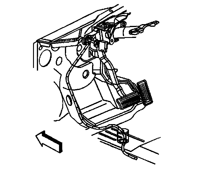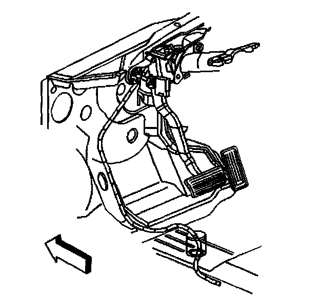 2. Remove the instrument panel knee bolster. Refer to Knee Bolster Replacement in Instrument Panel,Gauges and Warning Indicators.