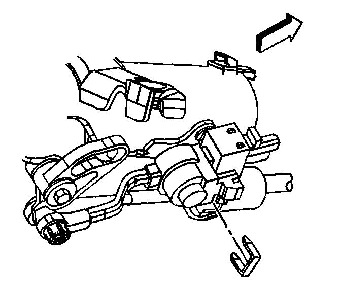 7. Depress the tangs and remove the cable from the steering column bracket.