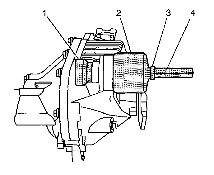 3.1. Install the J 21474-18 (1), the thrust bearing (2), the J 33791-1 (3), the J 36616-2 (4), and the forcing screw as shown.