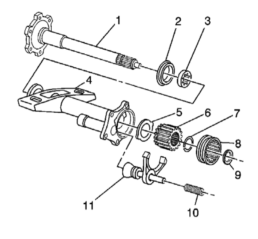 13. Remove the front drive axle clutch shaft, S4WD axle only.