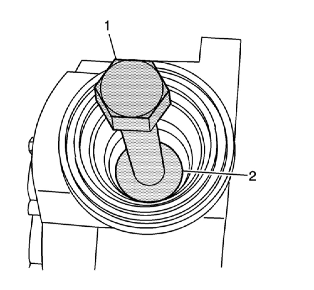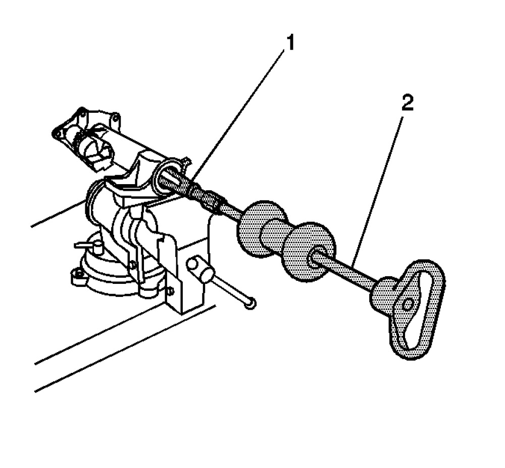 40. Install the forcing screw (1) of the J 45858 into the J 45858-4 (2).