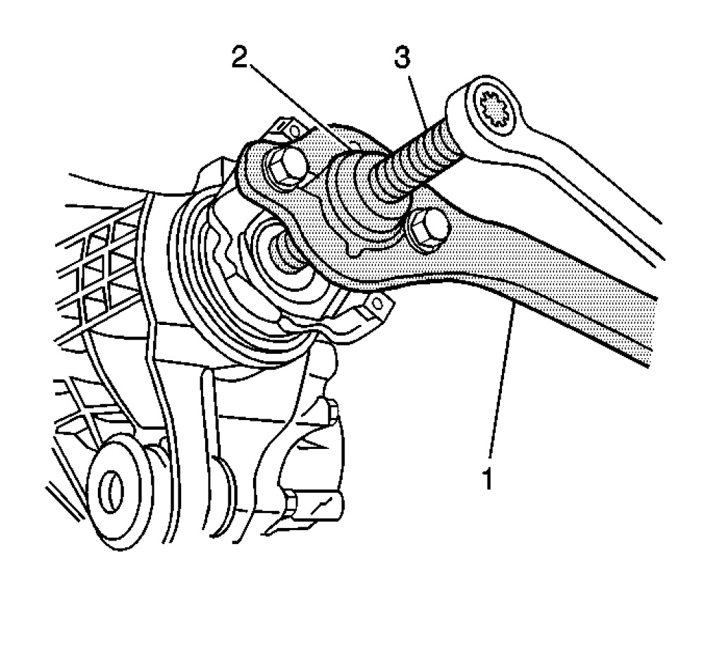 24. Remove the pinion yoke by turning the J 8614-3 (3) clockwise while holding the J 8614-01 (1).