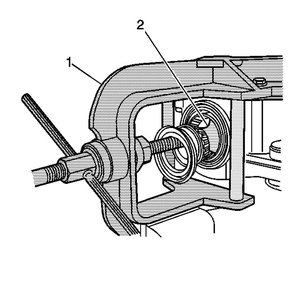 10.2 Install the J 29369-1 (1) behind the inner axle shaft bearing.