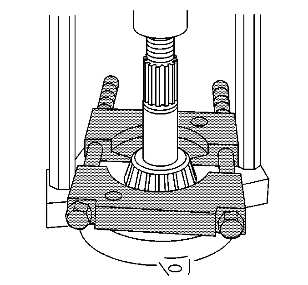 25. The steps below explain how to remove the drive pinion and pinion bearing cups using the J 36598 or the J 45765 and the J-45858 . Follow the appropriate steps depending on what tool is available.