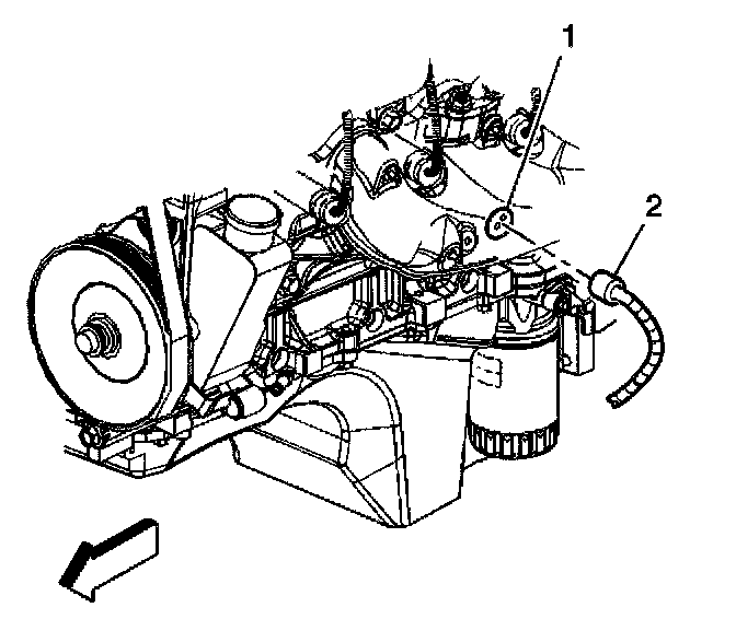 9. Push the engine coolant heater cord electrical connector (2) firmly into the coolant heater (1).