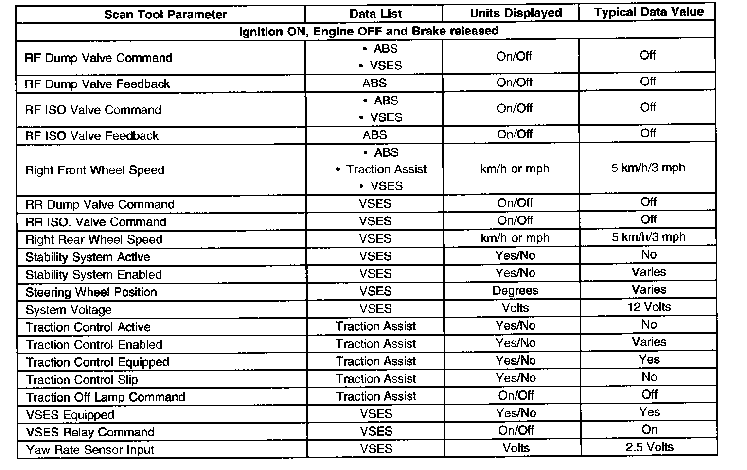 Scan Tool Data List