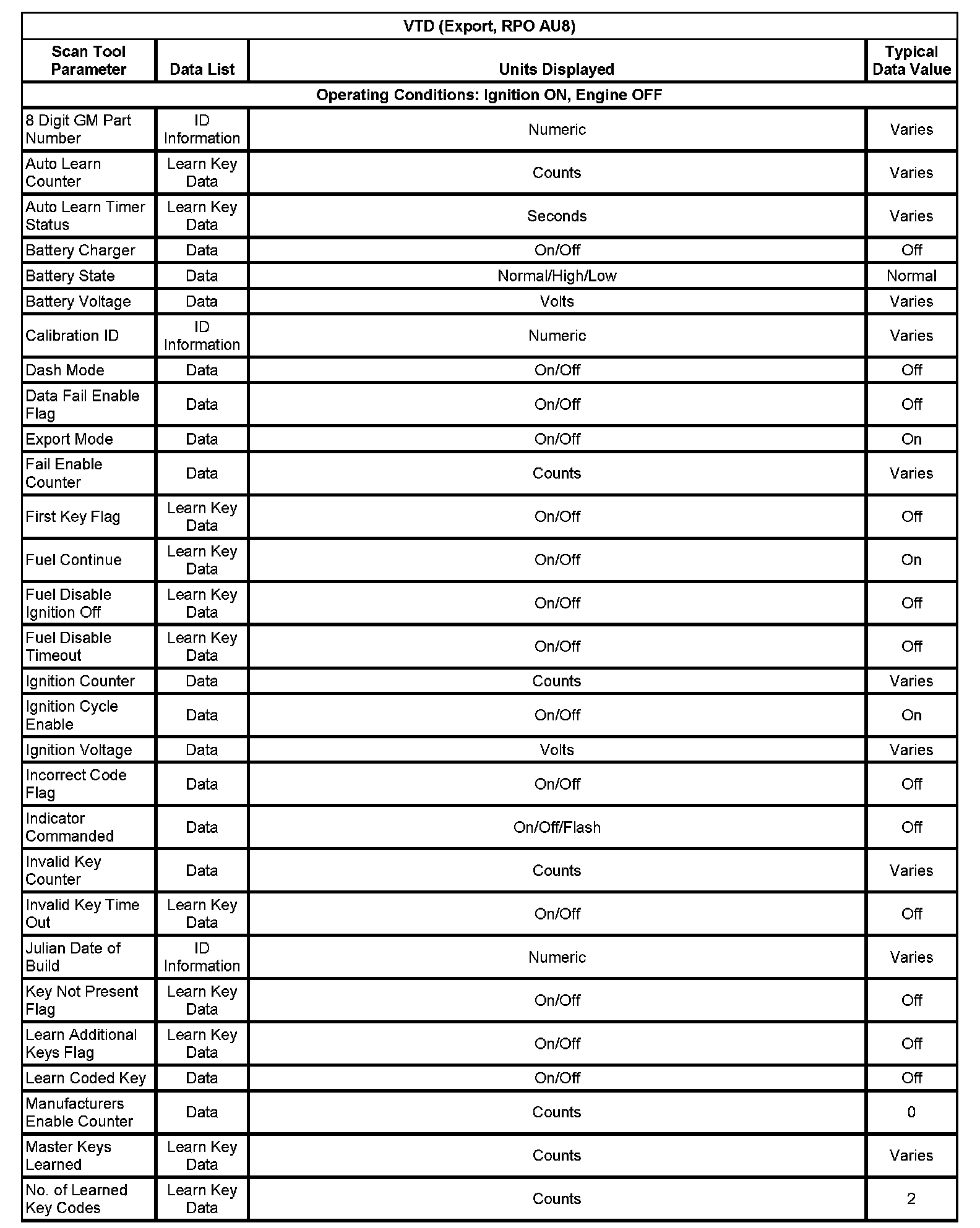 Theft Deterrent - Immobilizer - Some Export Vehicles