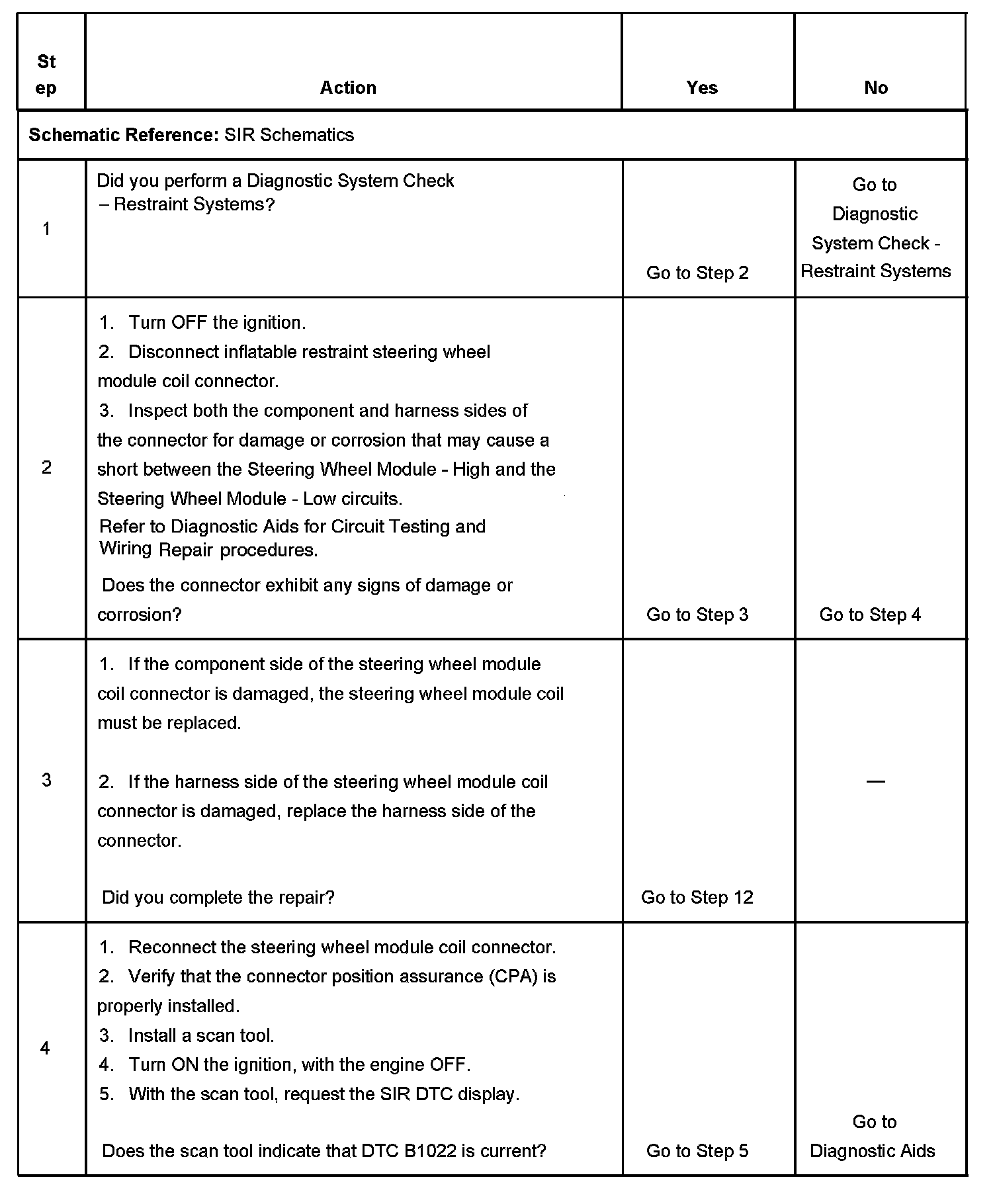 5. Tests to see if the malfunction is caused by either the inflatable restraint steering wheel module or steering wheel module coil.