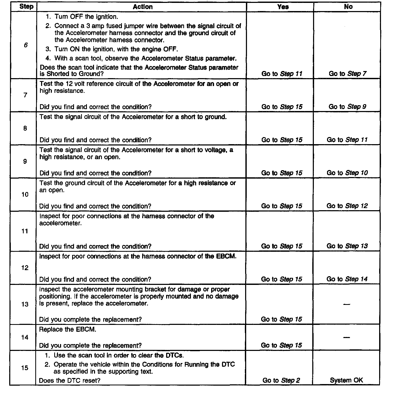 ^ the accelerometer signal circuit voltage is less than 0.47 volts
