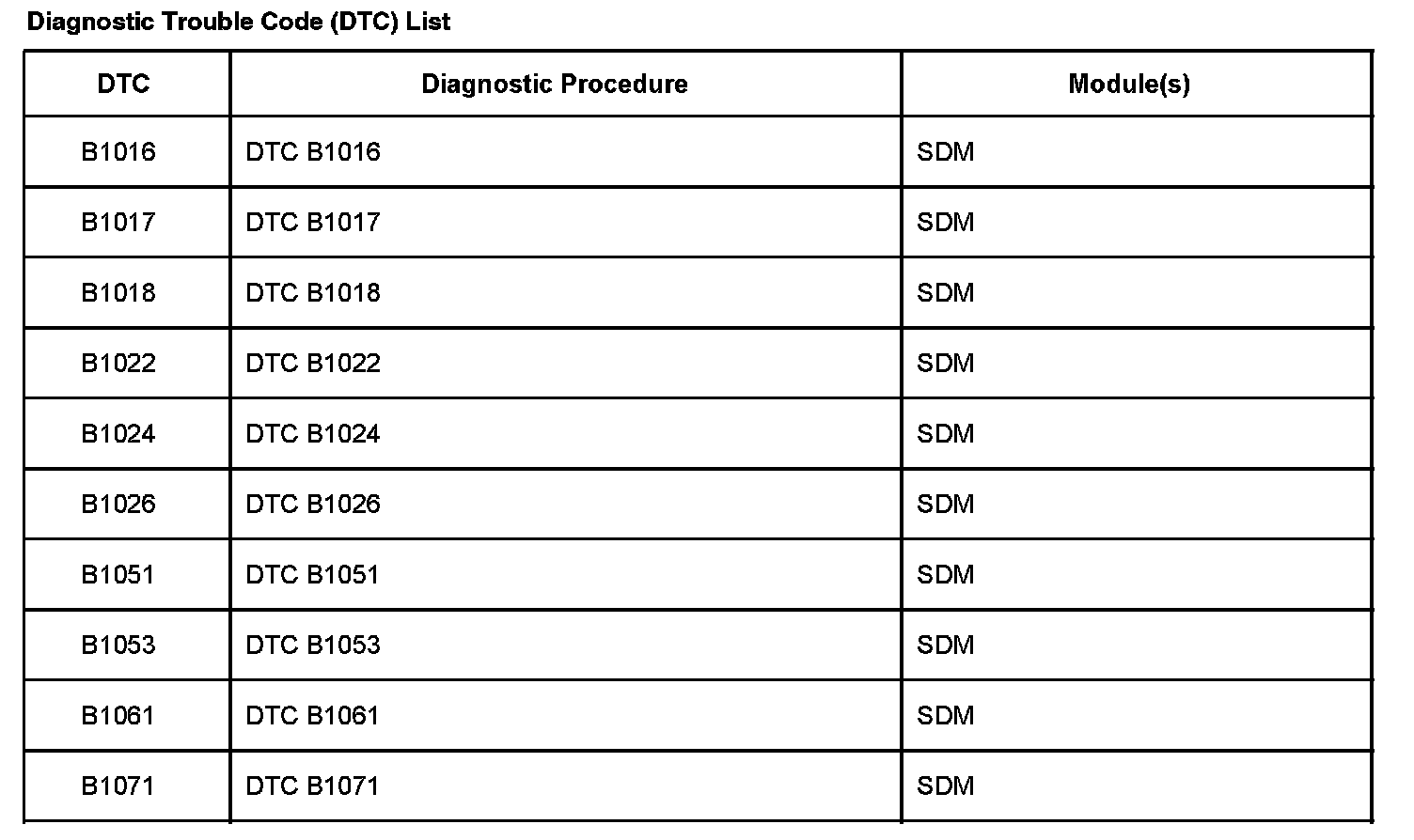Diagnostic Trouble Code List/System