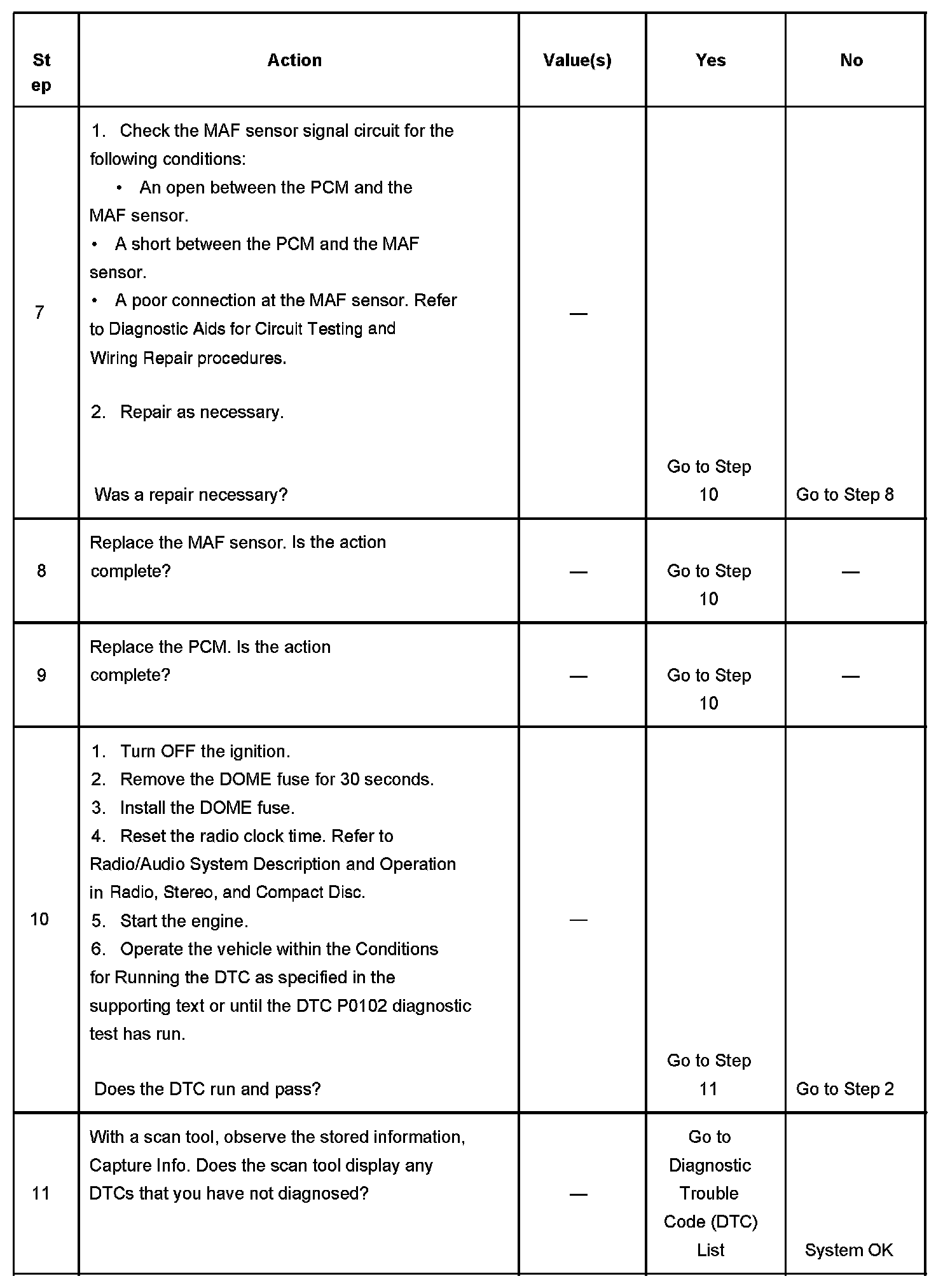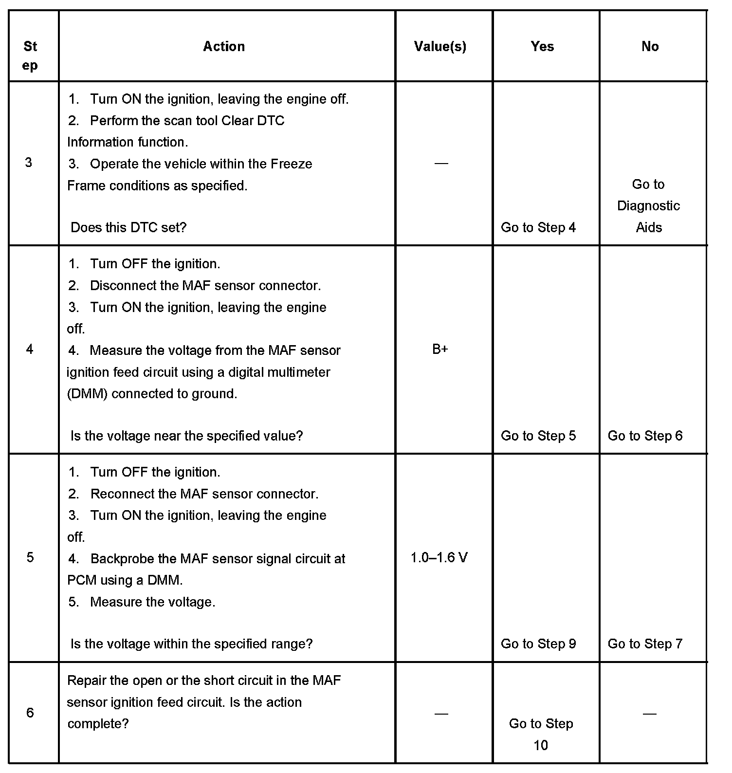 7. This step checks for an open or a short in the MAF sensor signal circuit between the MAF sensor and the PCM.