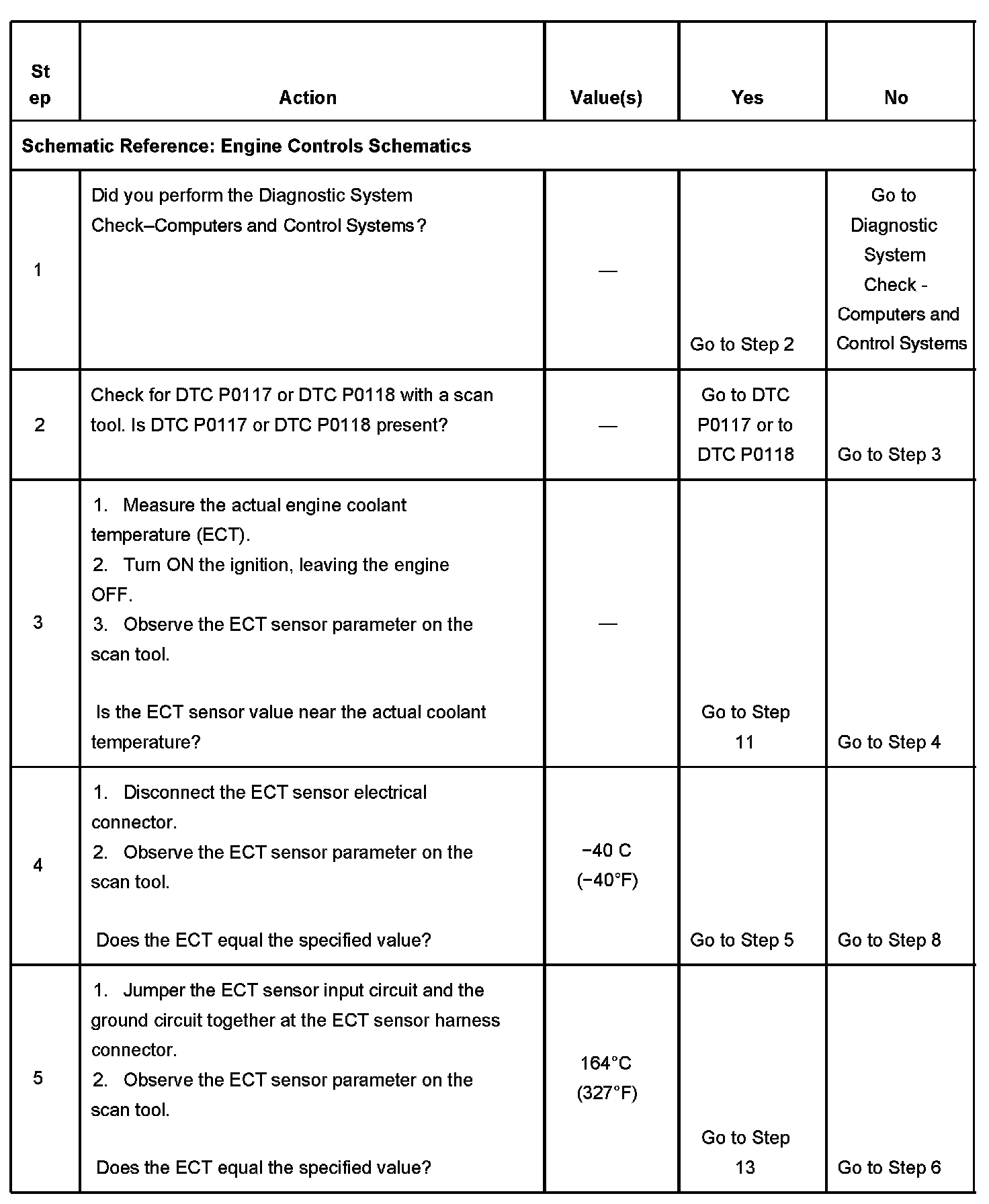 3. This step checks for a faulty engine coolant temperature (ECT) sensor or ECT sensor circuit.