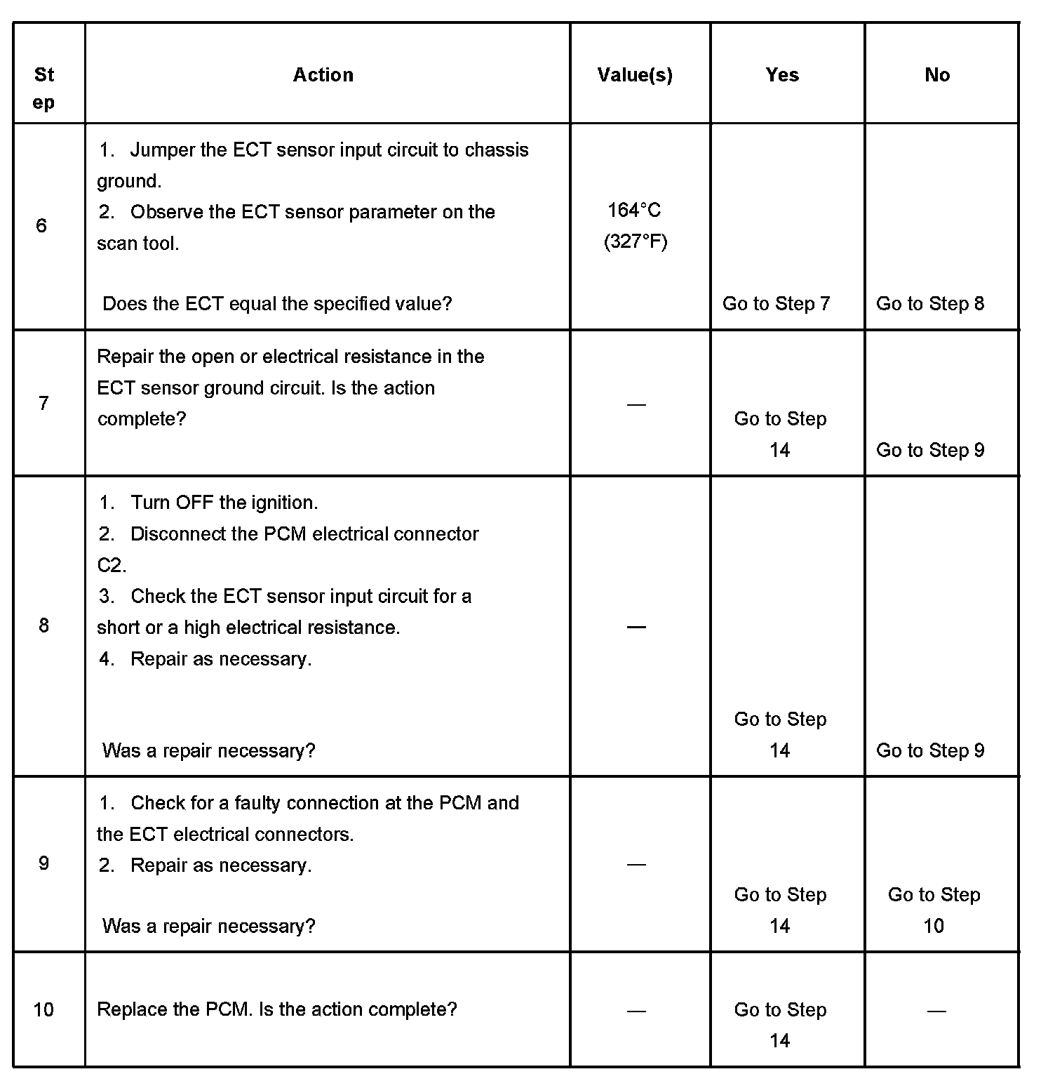 5. This step checks the integrity of the ECT sensor ground circuit.