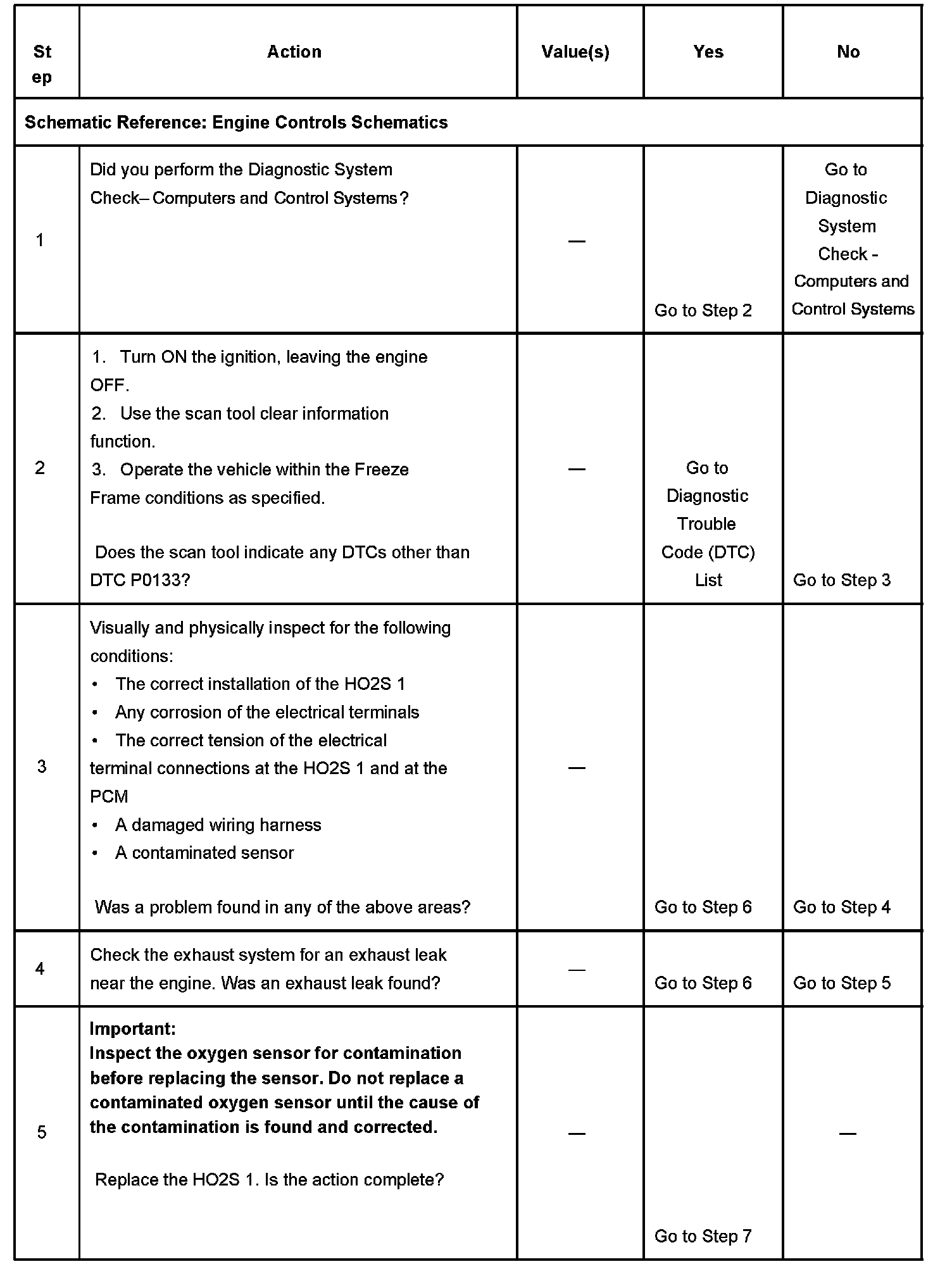 If the DTC P0133 cannot be duplicated, the information included in the Freeze Frame data can be useful in determining vehicle operating conditions when the DTC was first set.