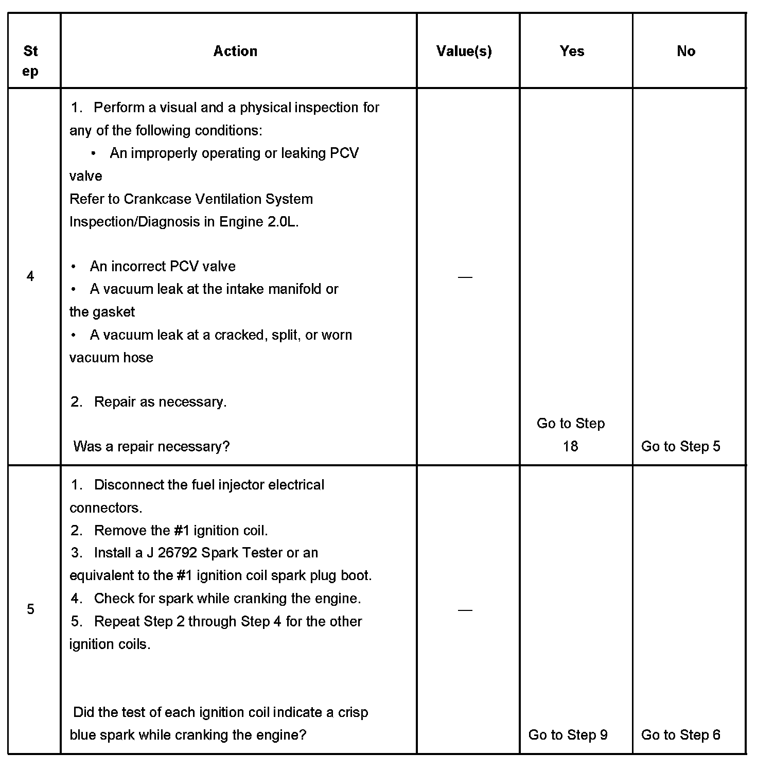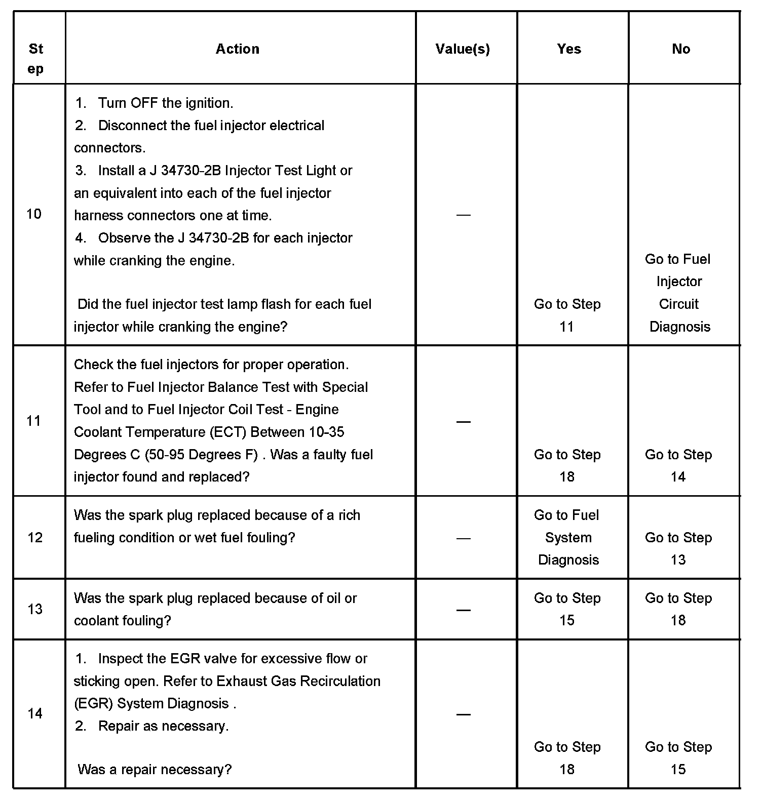 15. This step checks for a mechanical fault as the cause of the misfire condition. A low engine compression and an improper valve lash may also cause a rough idling condition.