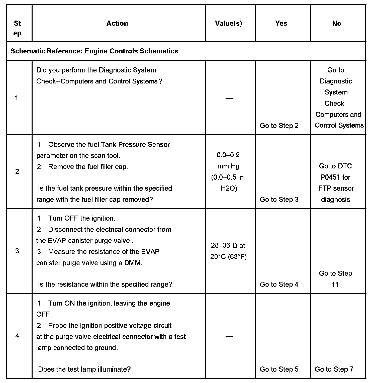 Test the operation of the EVAP canister purge valve. Refer to Evaporative Emission (EVAP) Control System Diagnosis. Component Tests and General Diagnostics