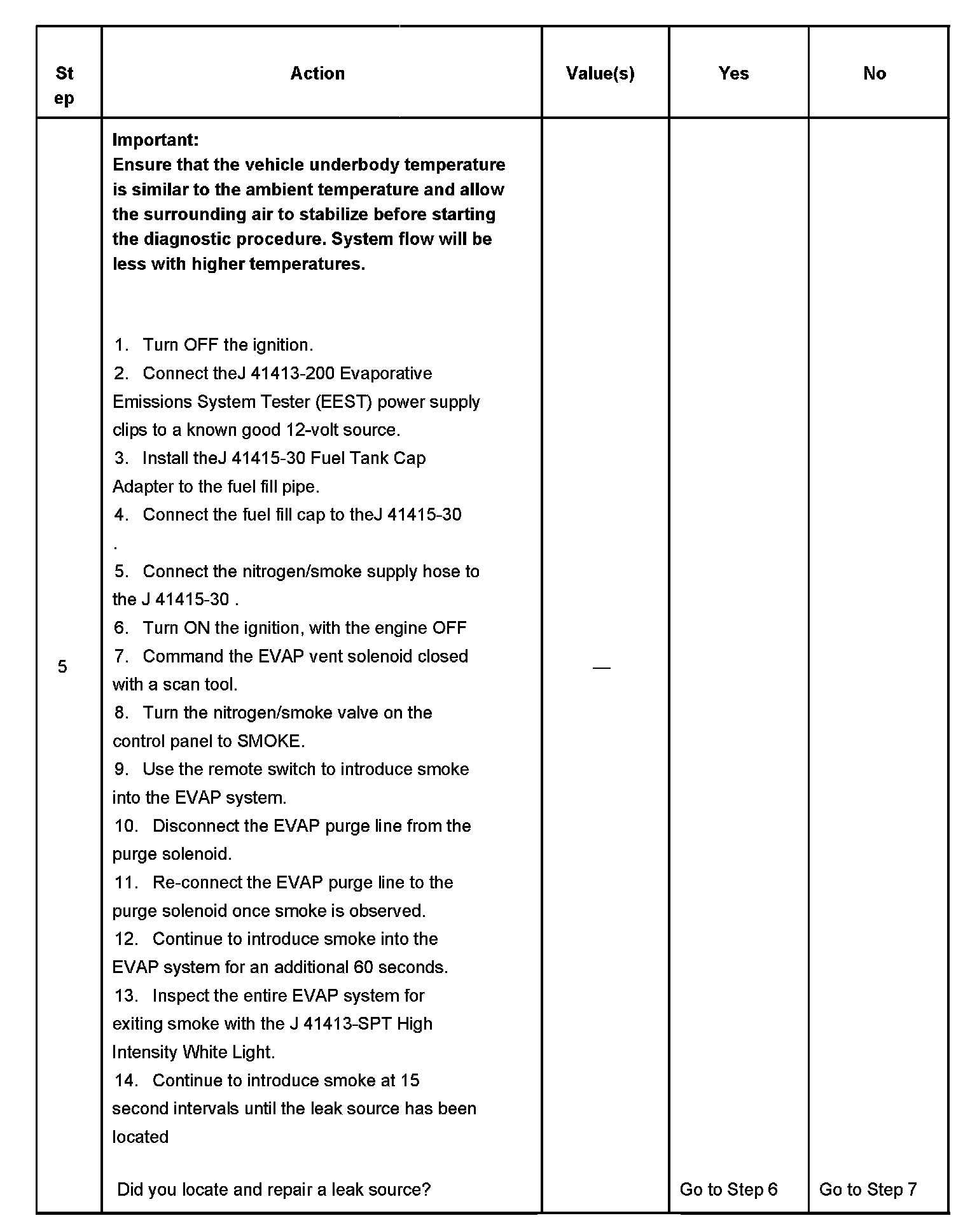 5. This step uses tools from the EVAP pressure/purge cart diagnostic station, in order to determine whether EVAP control system is sealed sufficiently to be pressurized. Any leak that is found must be located and repaired before continuing with the diagnosis.