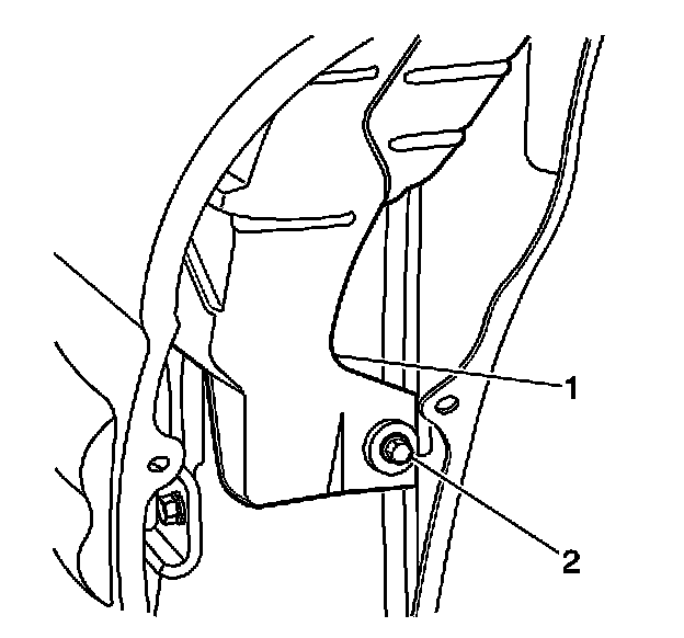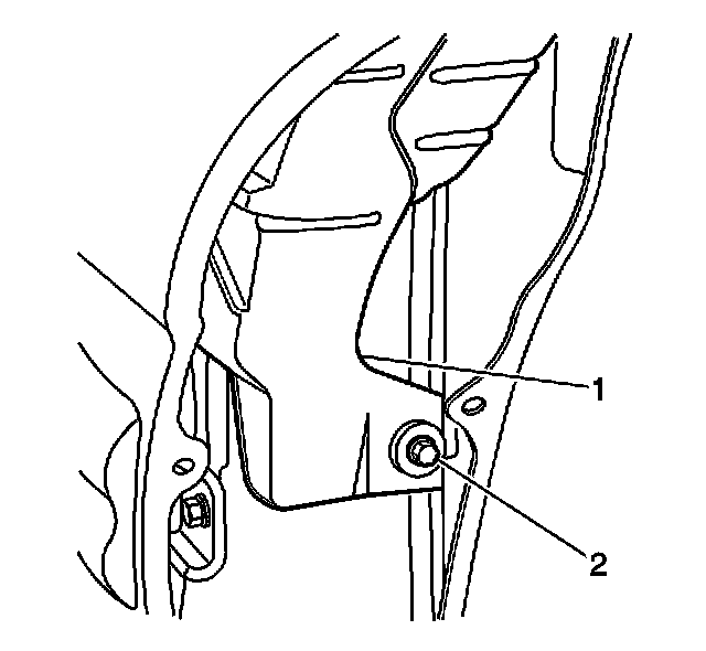 3. Install the bolt (2) that retains the fixed antenna bracket (1).