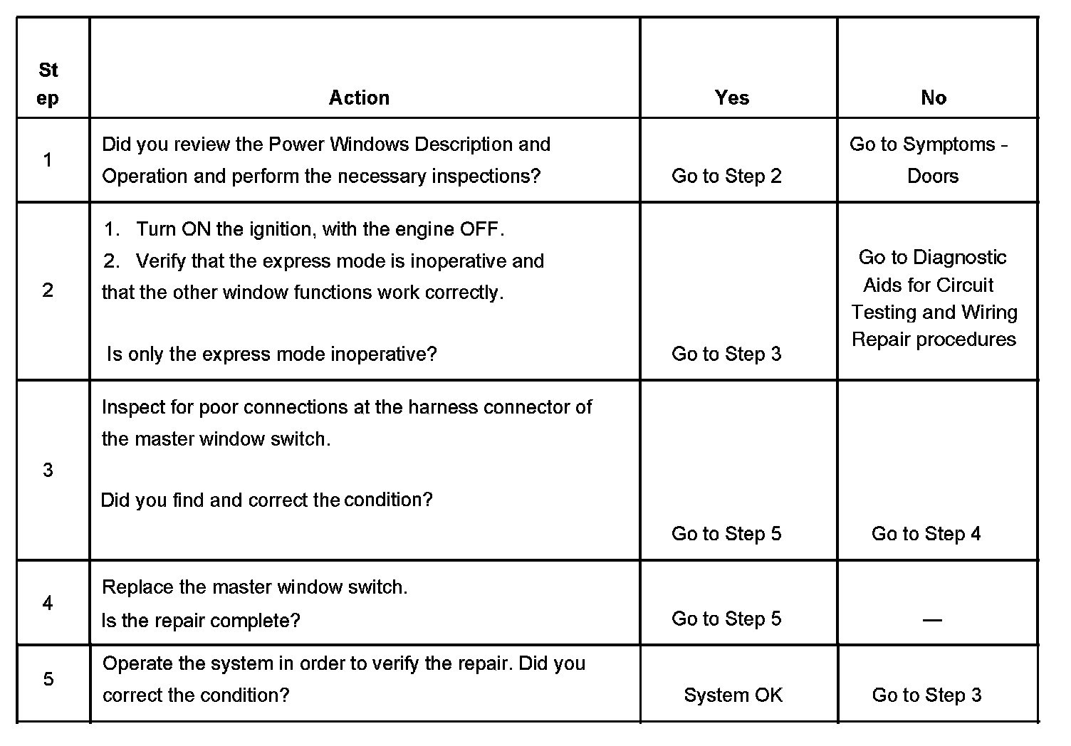 Power Windows - Inoperative - Express Down Function
