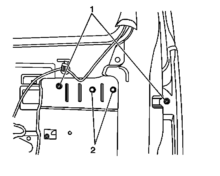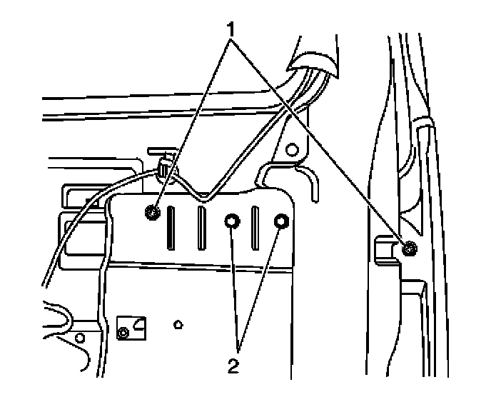 2. Remove the 2 mounting nuts (2) which secure the rear door outside handle.