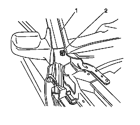 6. Open the front door in order to gain access to the fender to door jamb mounting bolt (1).