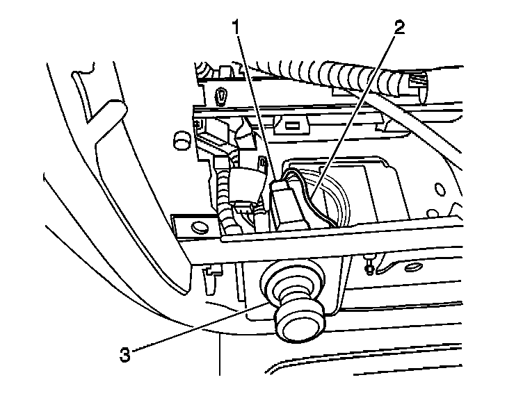 1. Install the cigar lighter assembly (2, 3) to the instrument panel. Secure the assembly with the retaining nut (1).