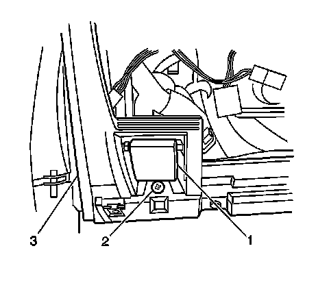 12. Install the screw (3) to the right side of the rear of the I/P assembly (1) that retains the I/P wiring harness (2).