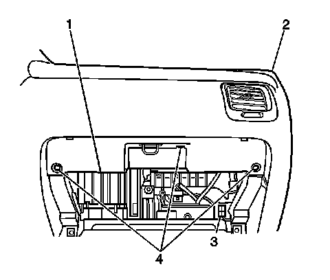 3. Remove the instrument panel (I/P) compartment. Refer to Instrument Panel Compartment Replacement (Service and Repair).
