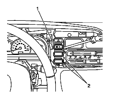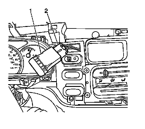 17. Disconnect the rear window defogger switch electrical connector (2), if equipped.