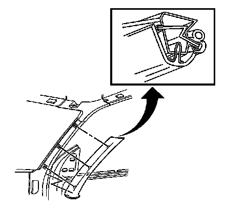 Install the windshield side garnish molding to the vehicle. Ensure that the plastic retainers are fully engaged.
