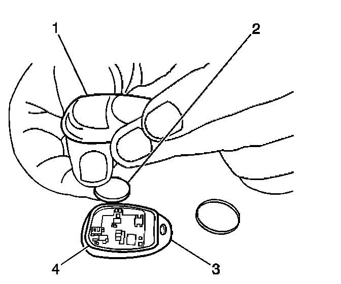 4. Verify that the remote control door lock receiver transmitter (3) is functioning correctly. If not, refer to Transmitter Programming.