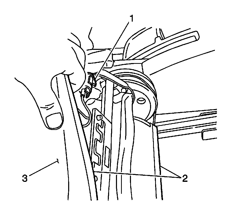 3. Install the lumbar control cable (3) to the lumbar adjuster (2).