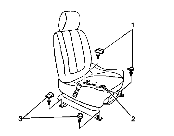 1. Remove the 4 front seat adjuster finish covers (1, 3) by sliding from the seat adjusters.